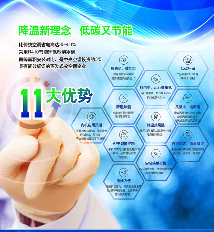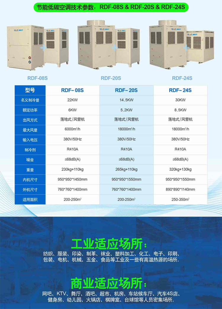 產(chǎn)品名稱:蒸發(fā)冷省電空調(diào)RDF-10C 產(chǎn)品型號(hào):RDF-10C 適用面積:250-350平方米 適用范圍:工廠車(chē)間、辦公室、網(wǎng)吧、商場(chǎng)、餐廳、車(chē)站候車(chē)室、汽車(chē)4S店等
